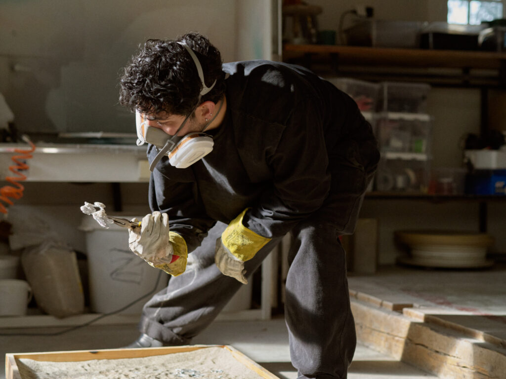 – GP Batteries utfordret meg til å skape noe av resirkulert batterimateriale, og da jeg hørte om magnesium og sink, ble jeg umiddelbart interessert. Som materialbasert kunstner lar jeg prosessen styre meg, og sink viste seg å være både utfordrende og fascinerende – hardt, mykt og perfekt for smykker, sier Ali.